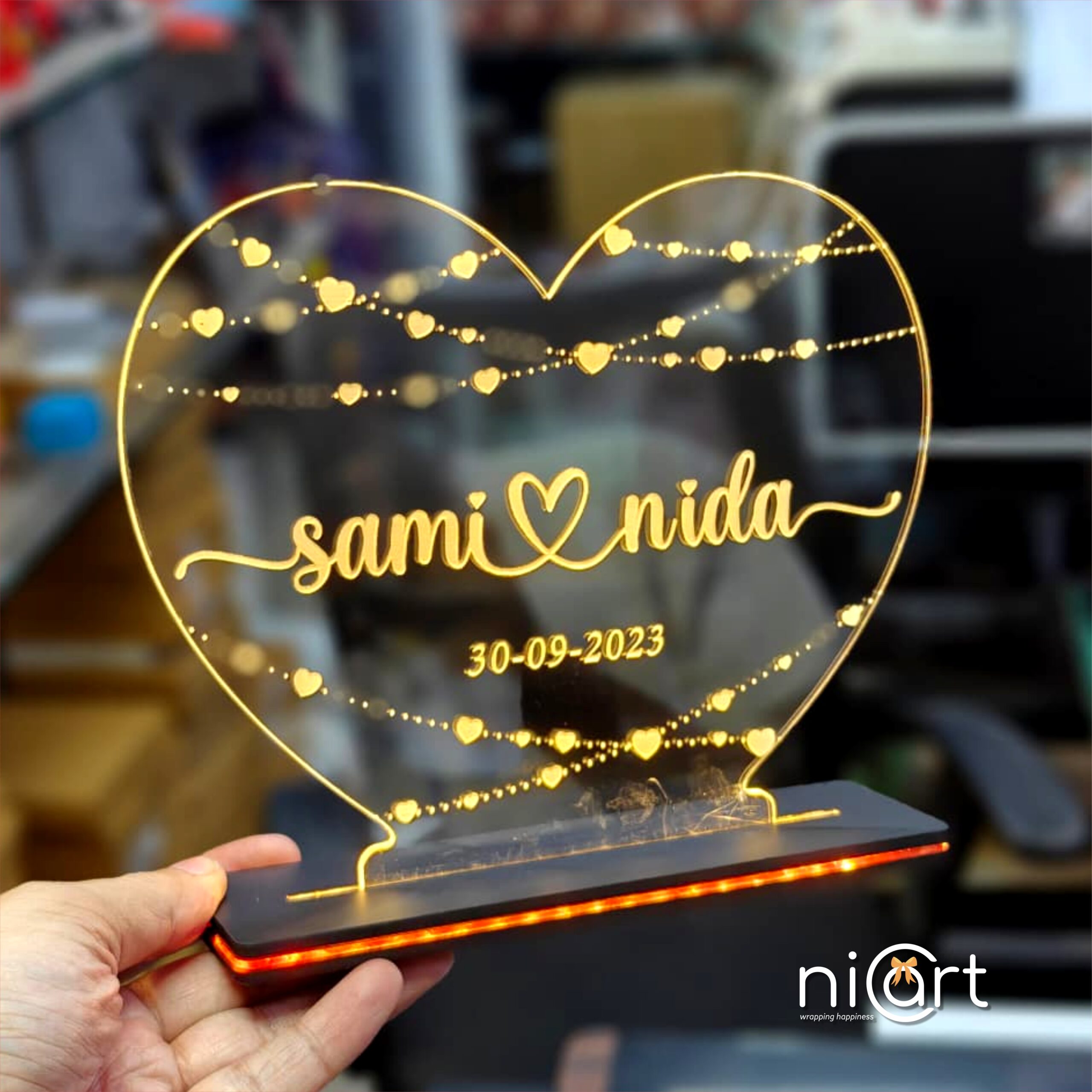 Crafted with precision, the lamp uses LED technology to bring your personalized engraving to life. Perfect for bedrooms, living rooms, or office desks, it doubles as both décor and a heartfelt keepsake.